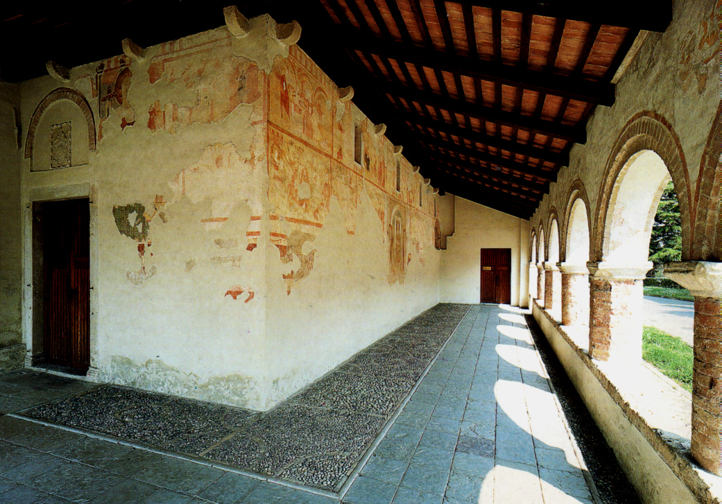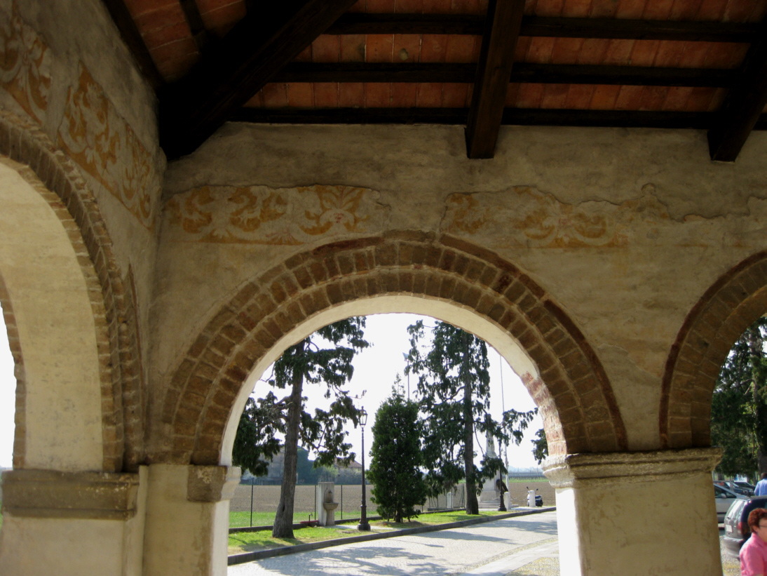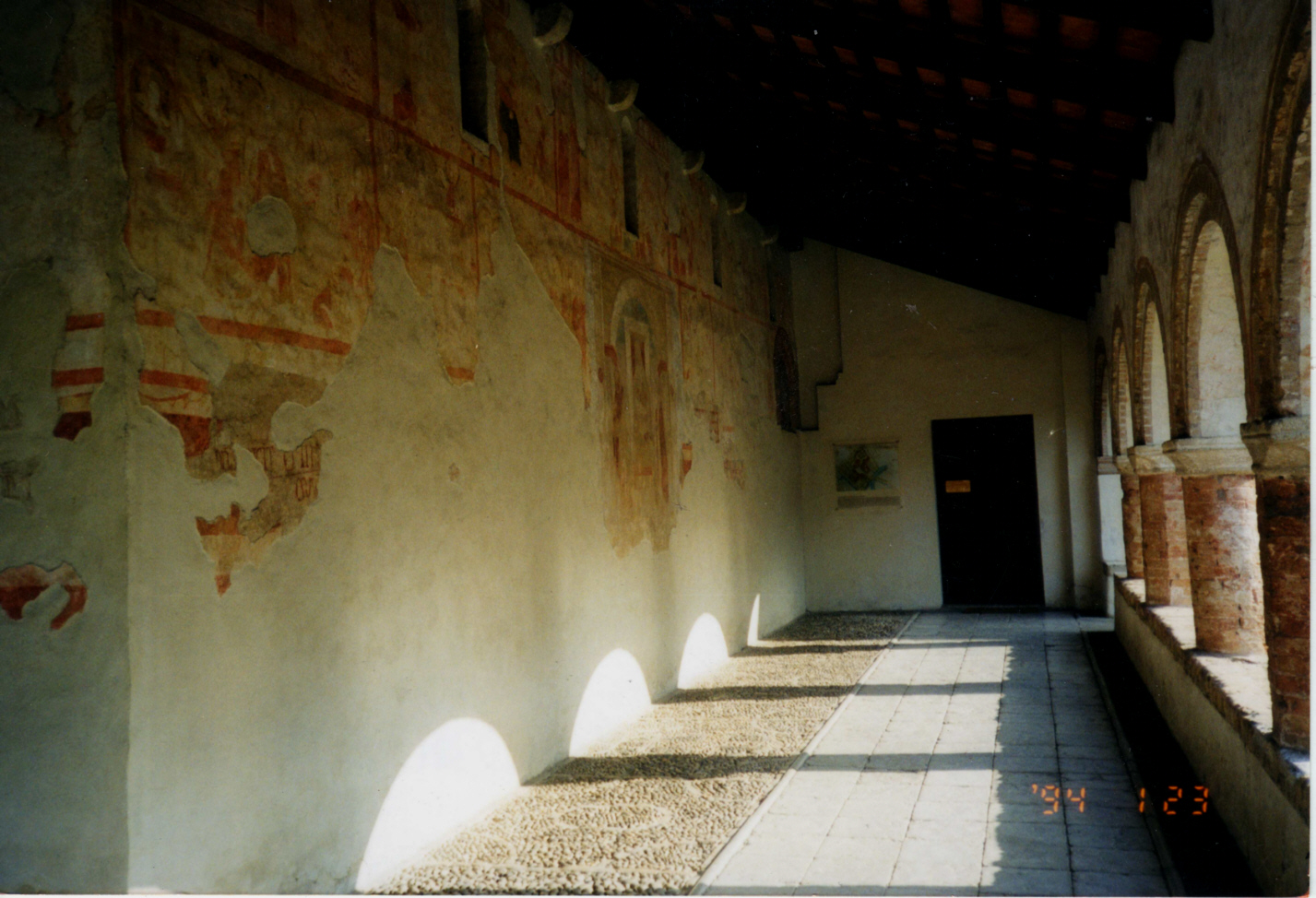 Sotto portico laterale con i resti di pittura sul muro.