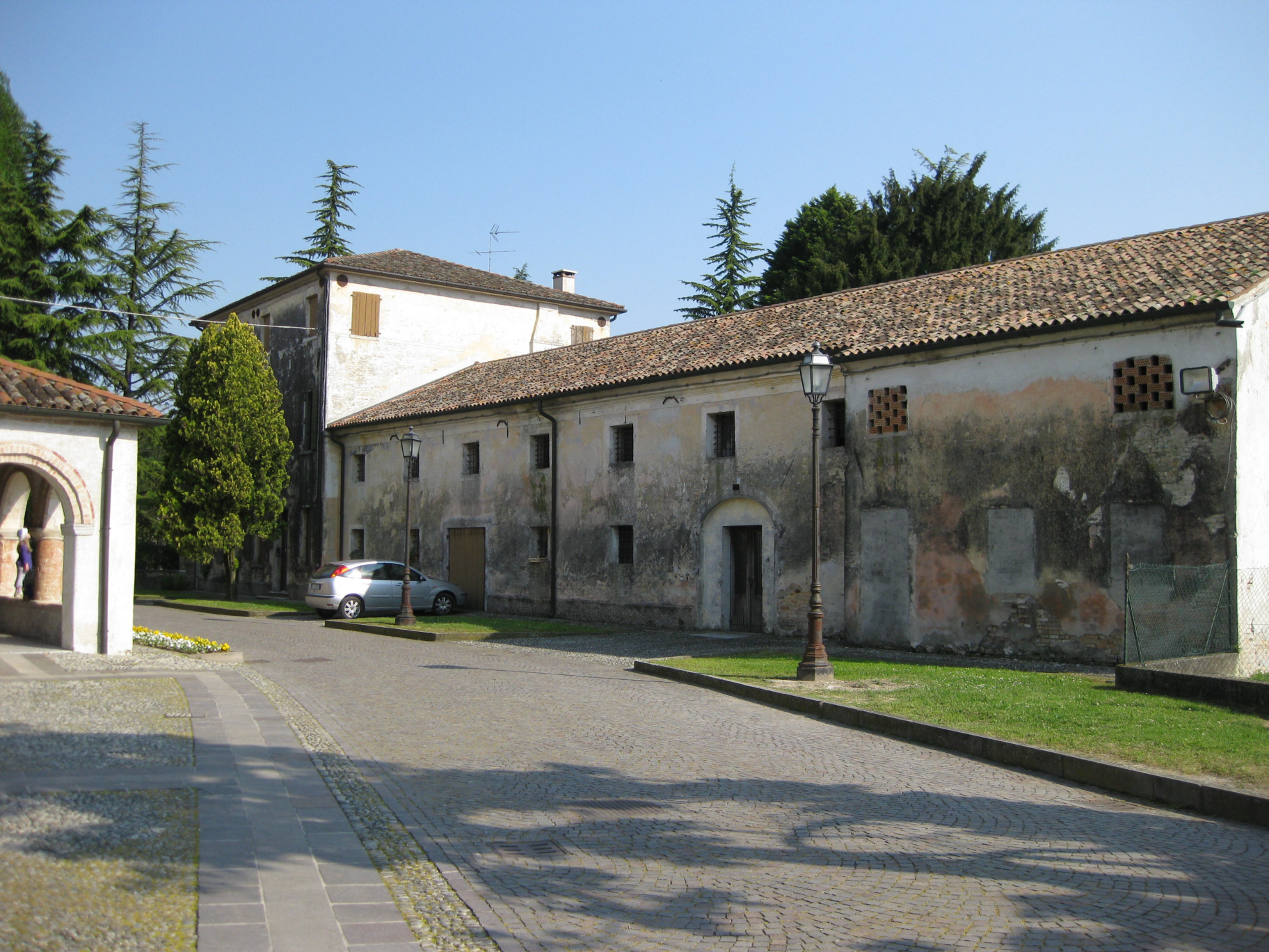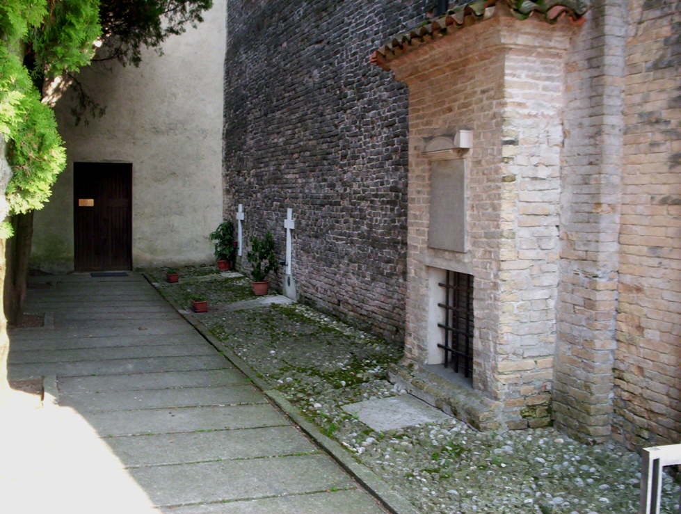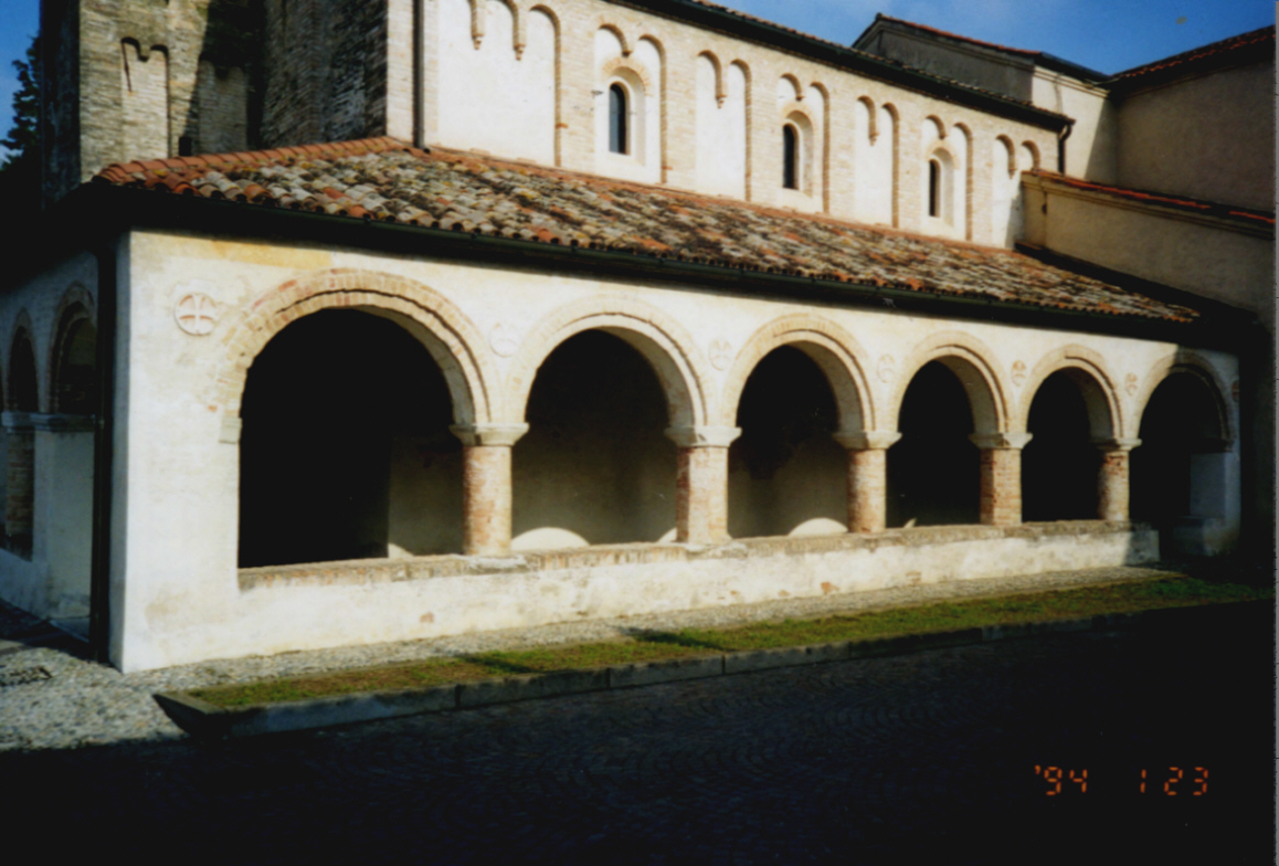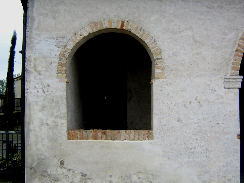 Sotto portico laterale con i resti di pittura sul muro.