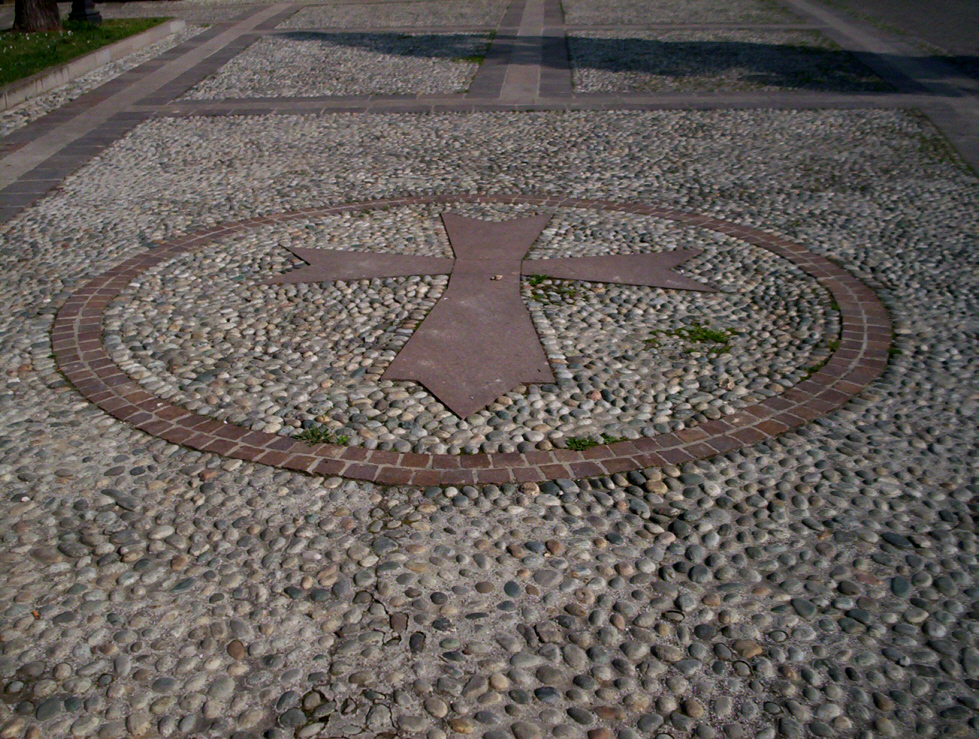 Stemma della Croce dei Giovanniti sul piazzale della Chiesa.