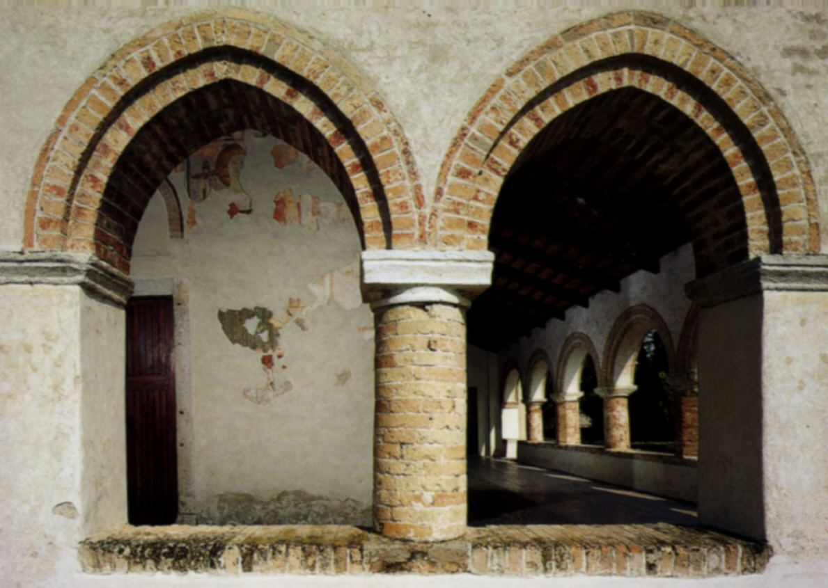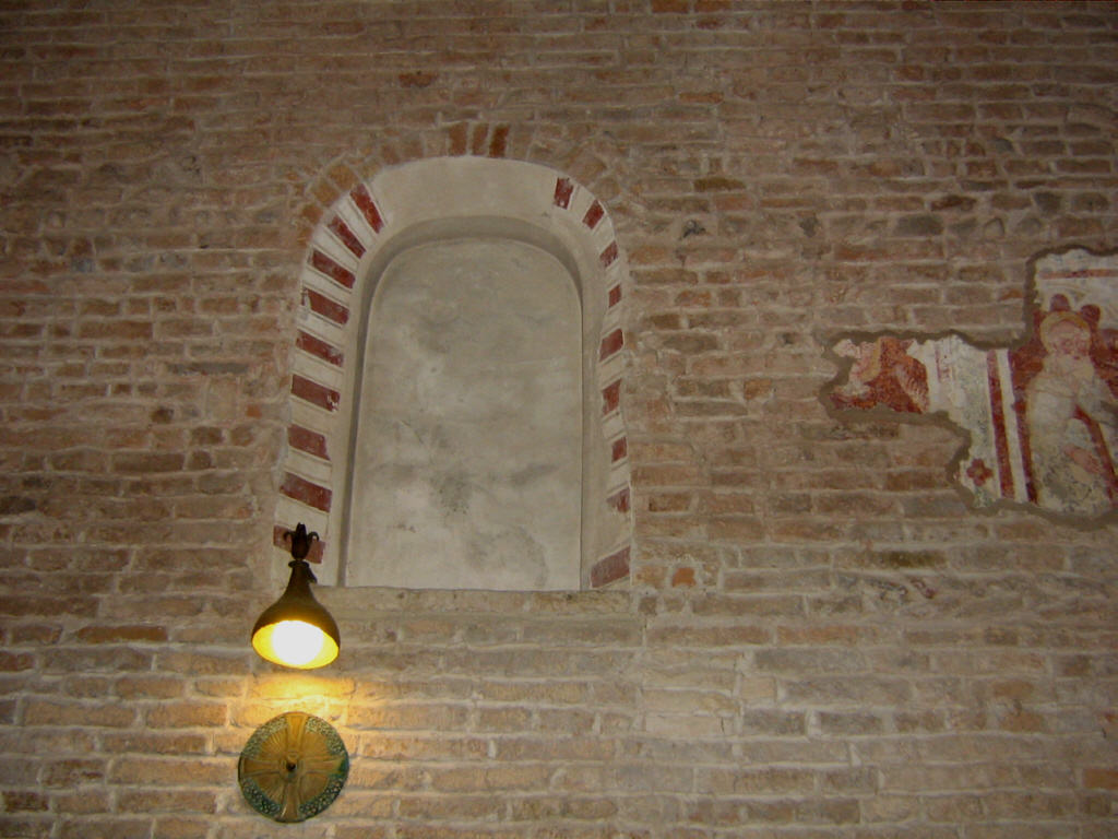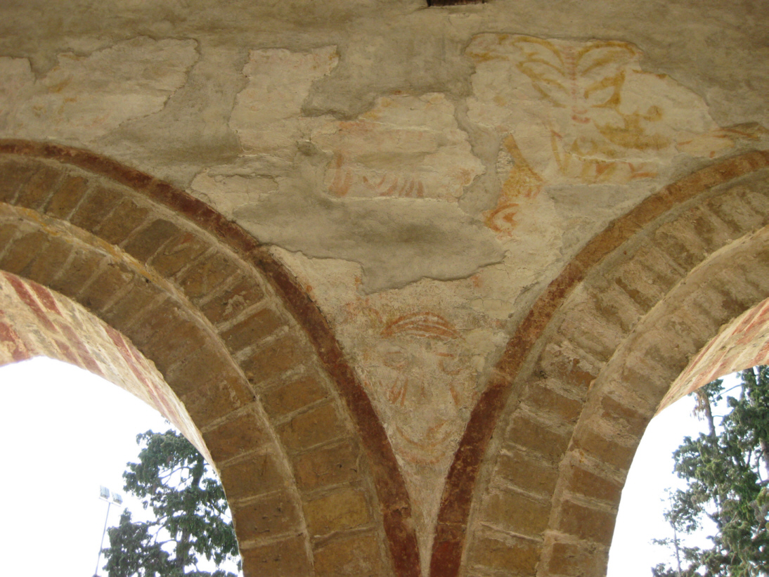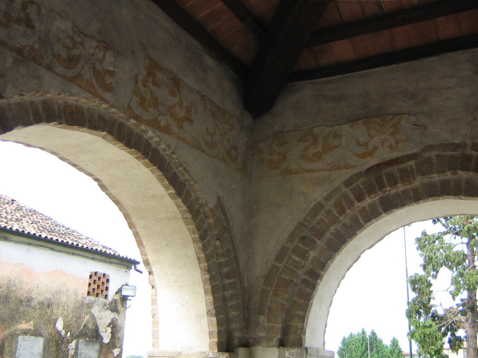 Particolari resti di un affresco fra due arcate del portico della chiesa.