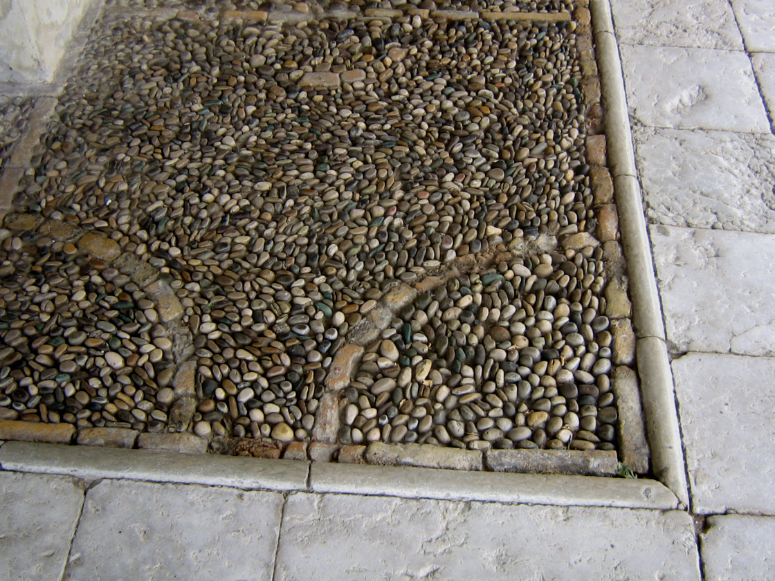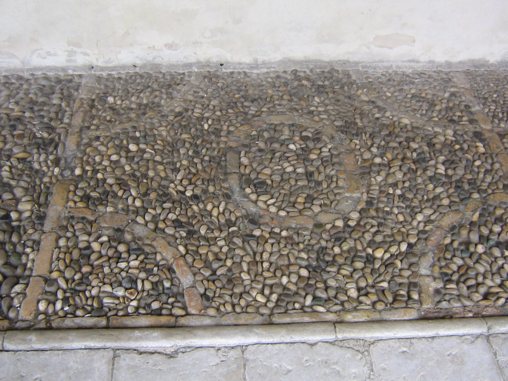 Disegno di sassi sul pavimento del portico .