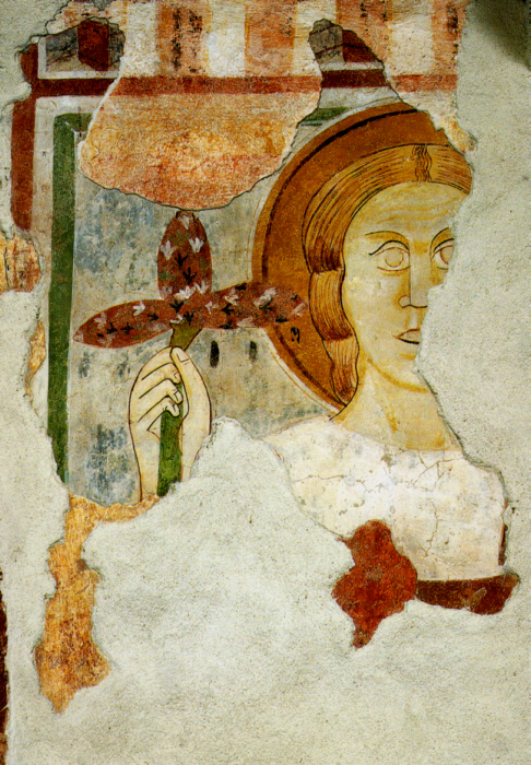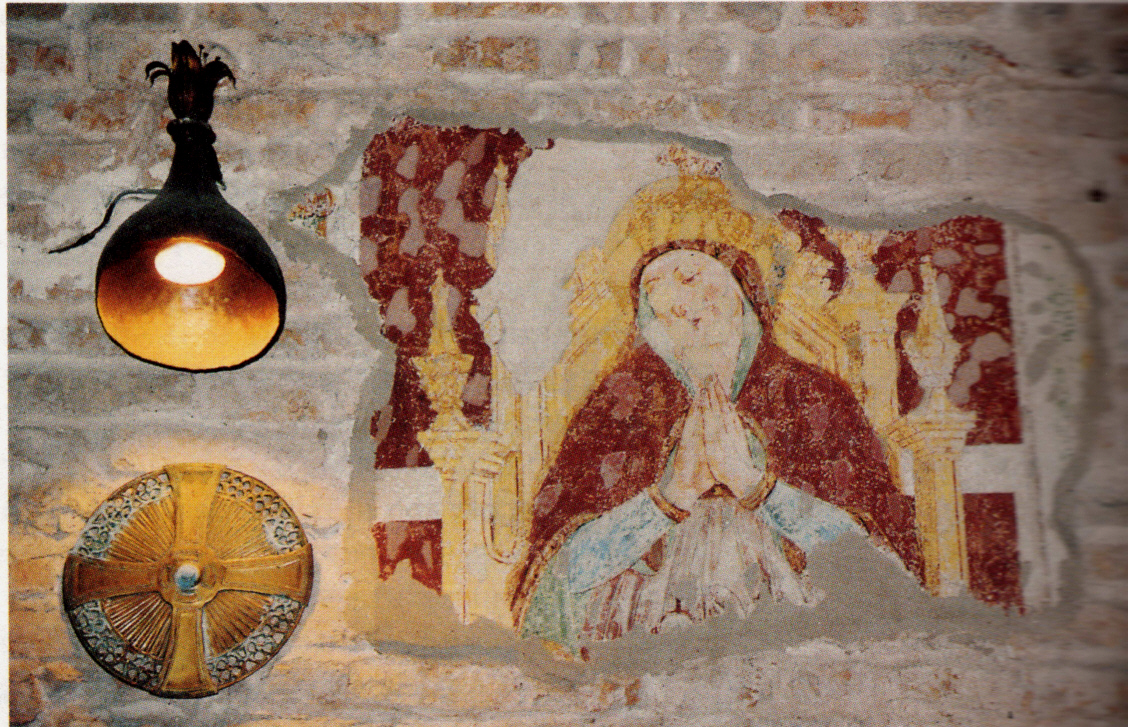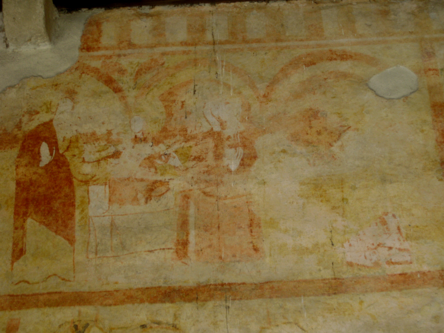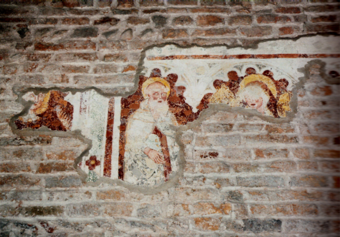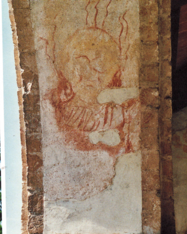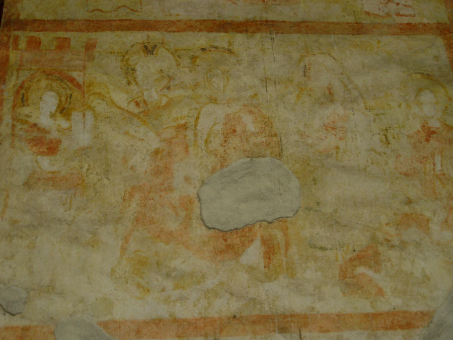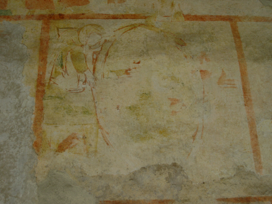 Resti di un affresco sopra ed attorno al porticato della chiesa.