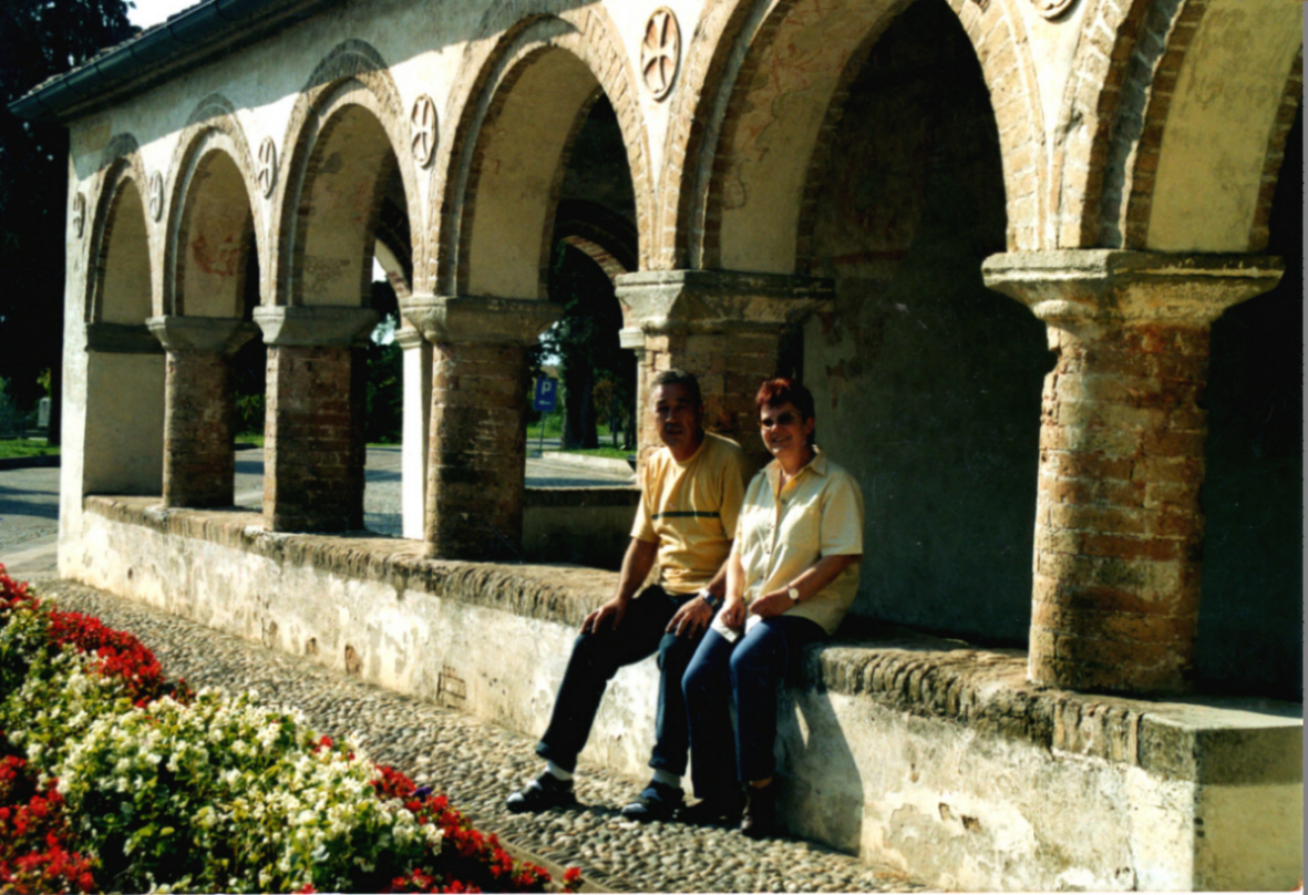 Anna Maria e Walter davanti al porticato.